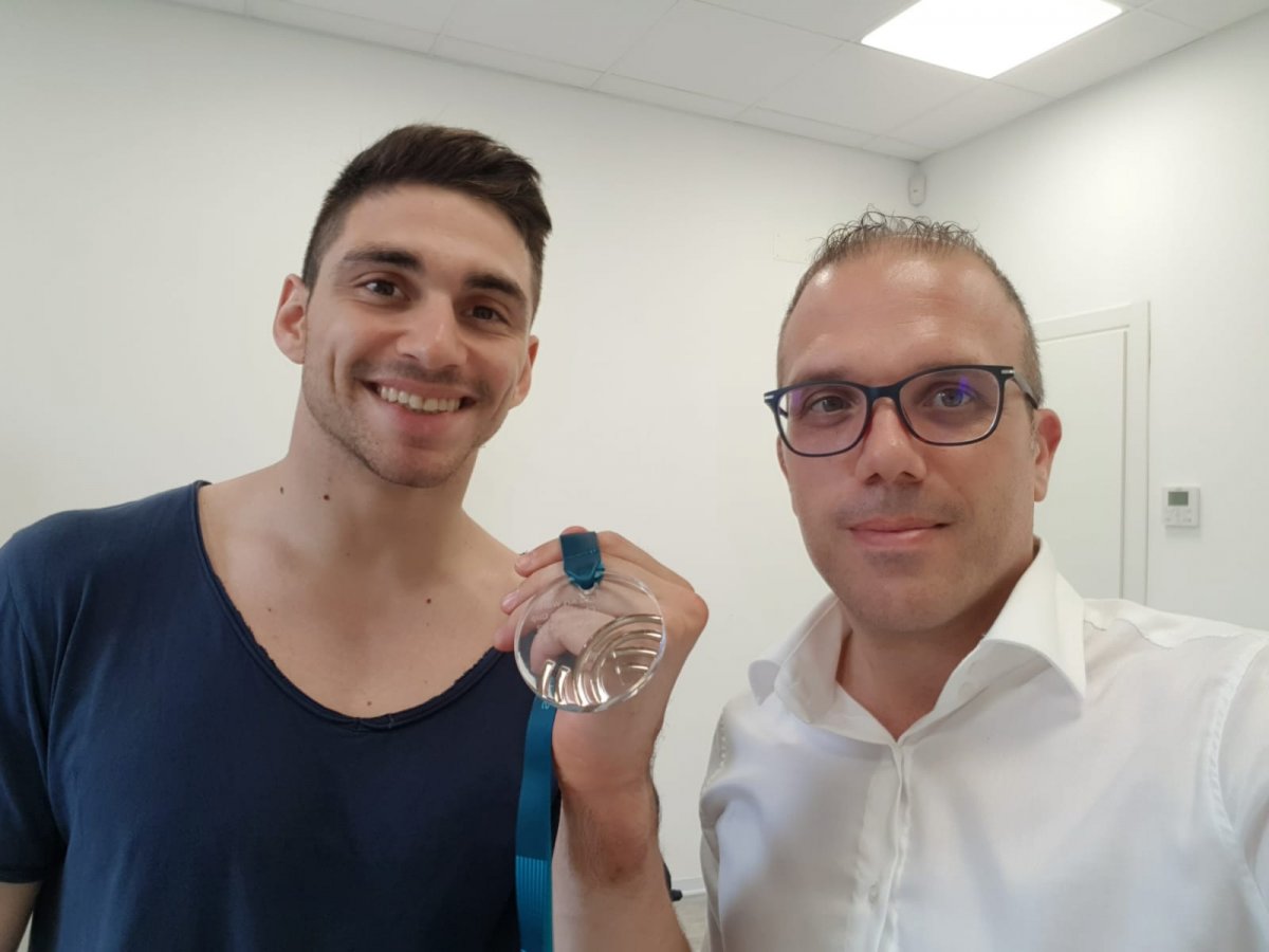Carlo Macchini oggi in ambulatorio in vista dei prossimi impegni internazionali per festeggiare il secondo posto ottenuto alla World Challenge Cup a Koper .