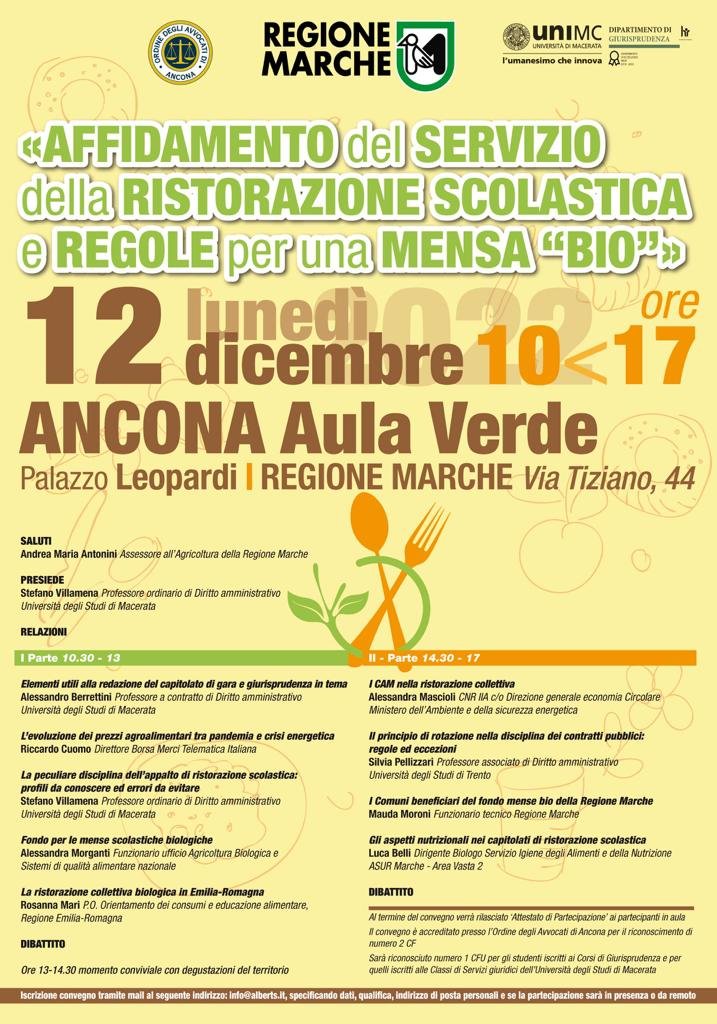 CONVEGNO “AFFIDAMENTO DEL SERVIZIO DELLA RISTORAZIONE SCOLASTICA E REGOLE PER UNA MENSA “BIO” - REGIONE MARCHE - ANCONA